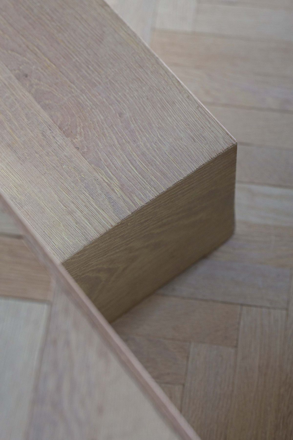 Visgraat in eiken plankjes met afmetingen 500x50 mm met als afwerking: verouderd, gekleurd, geolied.